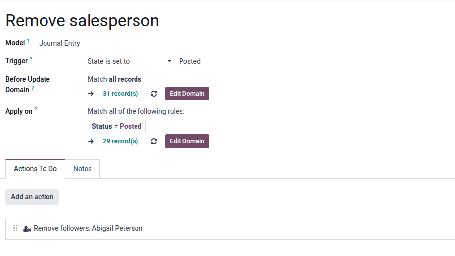 In Odoo, the salesperson of the sales order is automatically added as follower of the invoice.