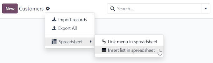 Note: doing it this way will will insert all existing and future records, you don't need to refresh the spreadsheet, the list of Customers will grow over time as it grows in the Menu you are inserting from.