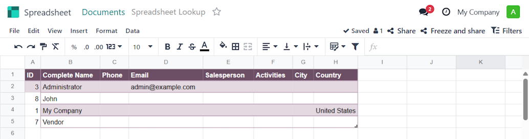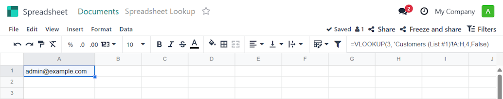 Very simple question here but I cannot find the answer. Can we look for value of a field of a specific record in a model from spreadsheet? For instance look up for email value of record ID 4 in res.partner ?