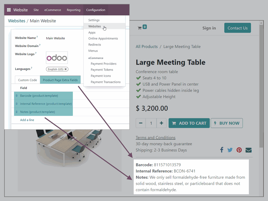 Activate Developer Mode to add Internal Reference Number to the list of Product Page Extra Fields.