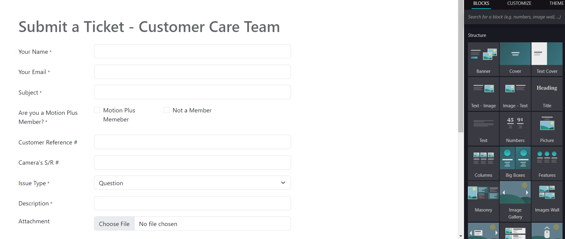 I have a very busy team and instead of receiving calls I want my customer to be able to create tickets by themselves by going to our website and create a ticket from there directly.